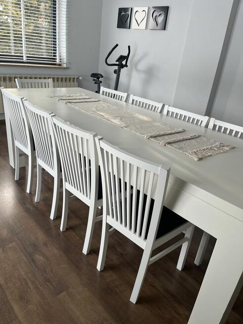 Sprzedam stół z krzesłami drewniany solidny gruby nie żadna okleina wymiary stołu długość 250 szer 90 wysokość 84 ...