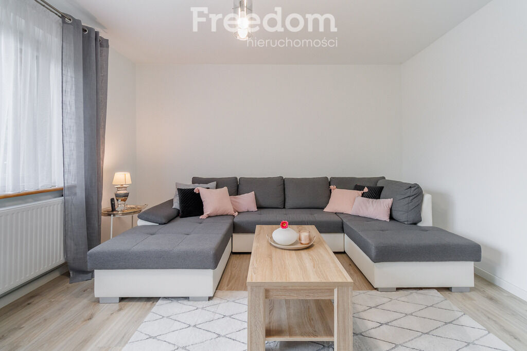 salon z narożnikiem i wyjściem na balkon, dwie przytulne sypialnie